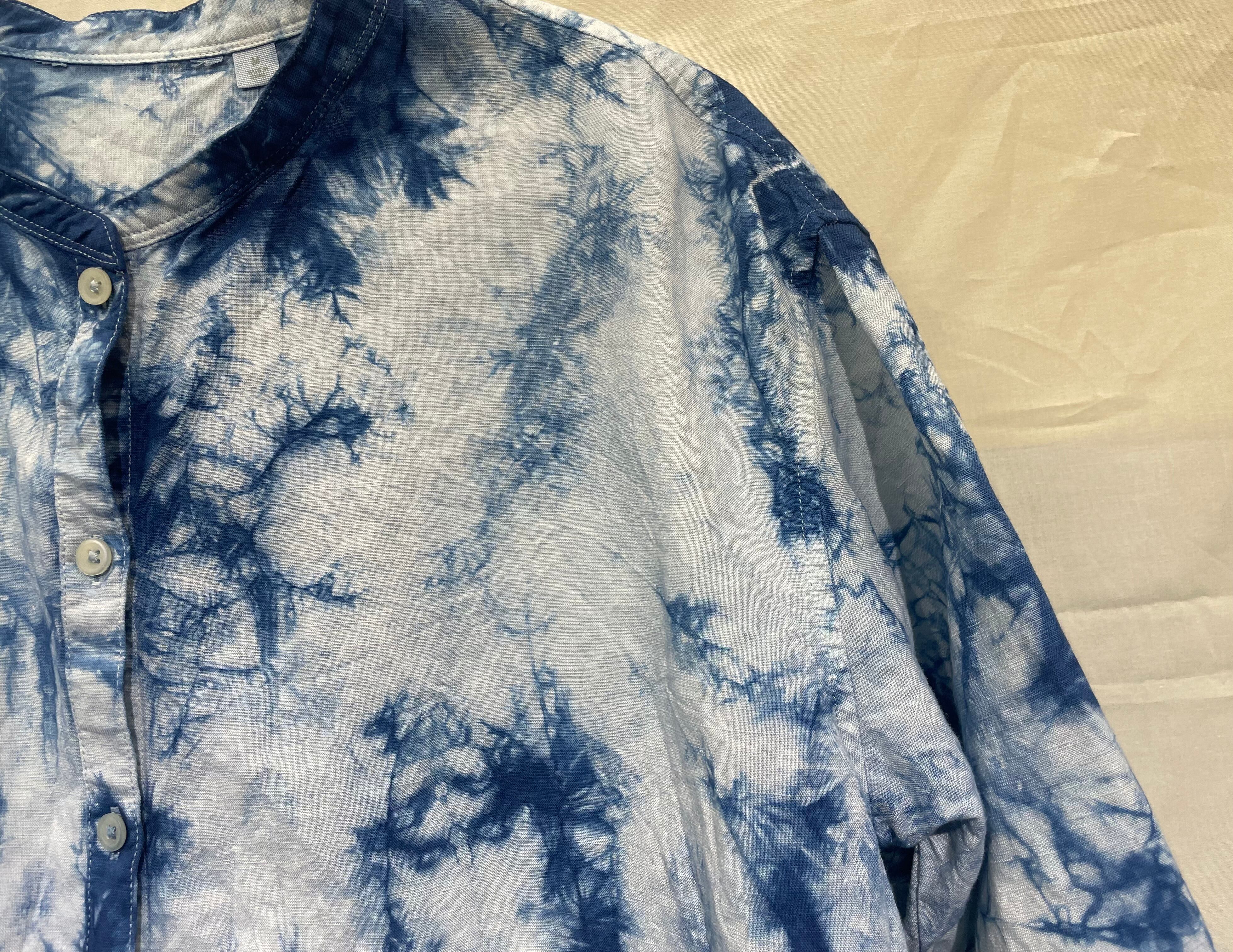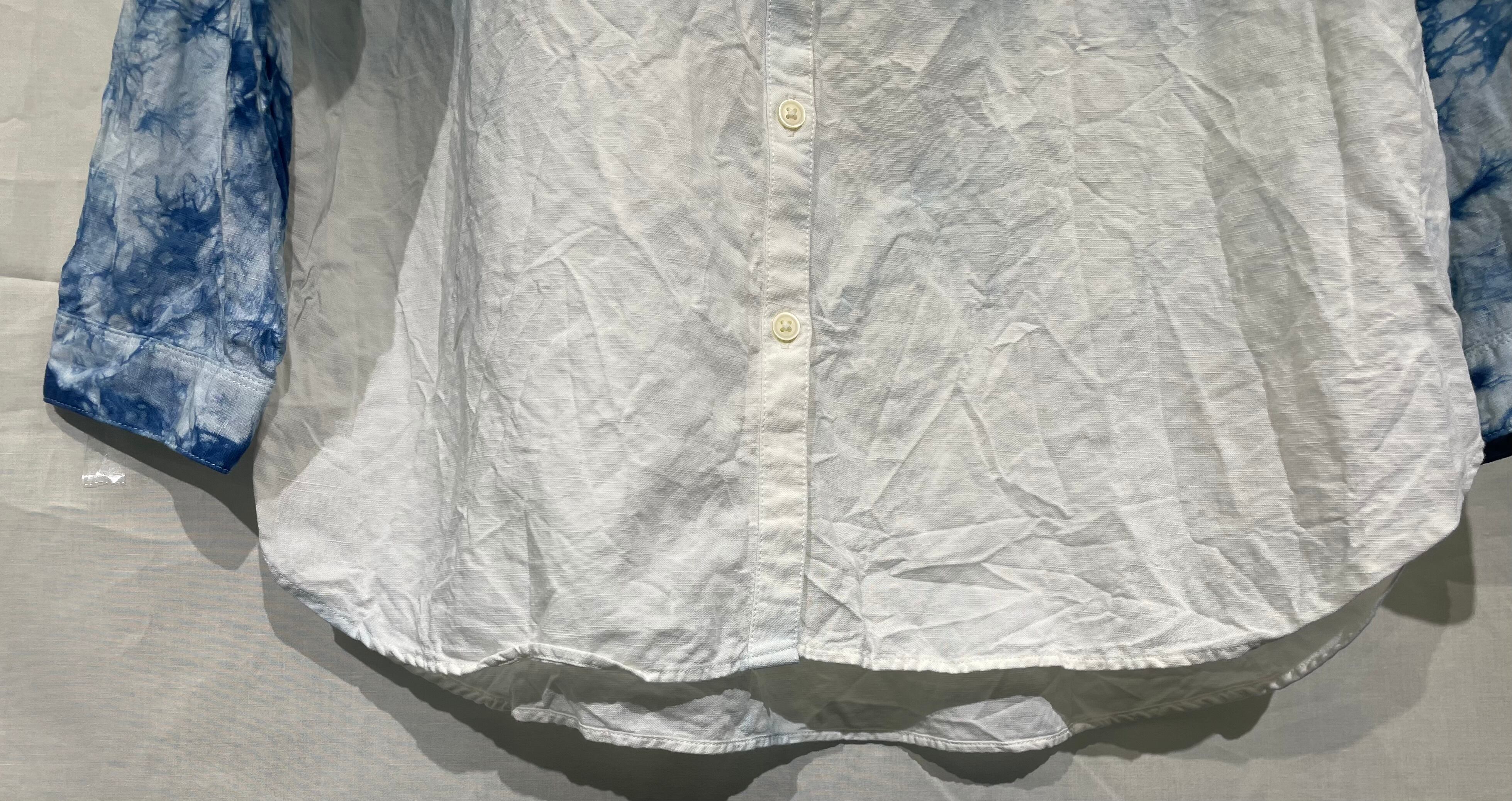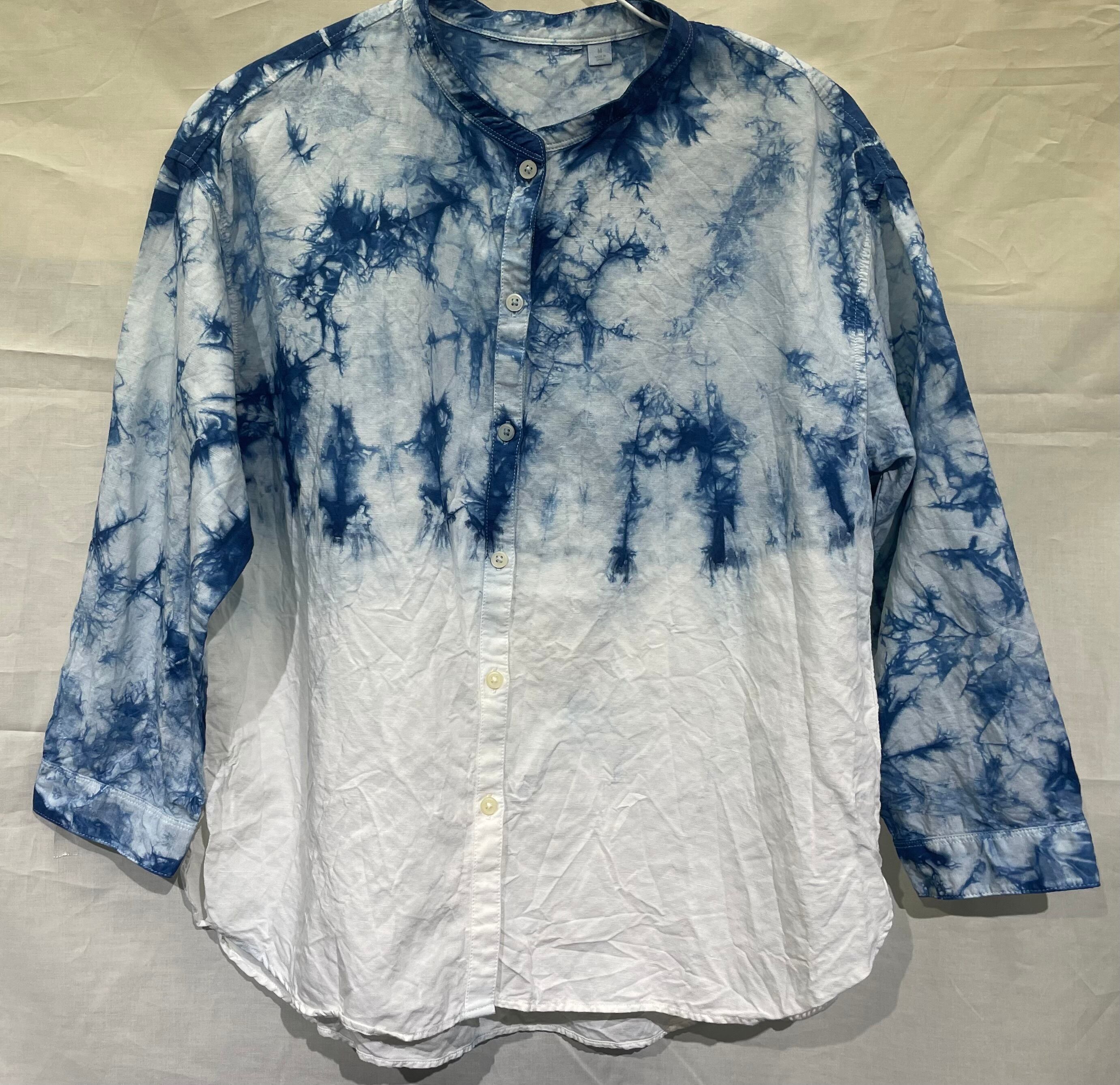 藍染前あきブラウス/7分袖/綿/M[aib604-164]送料無料