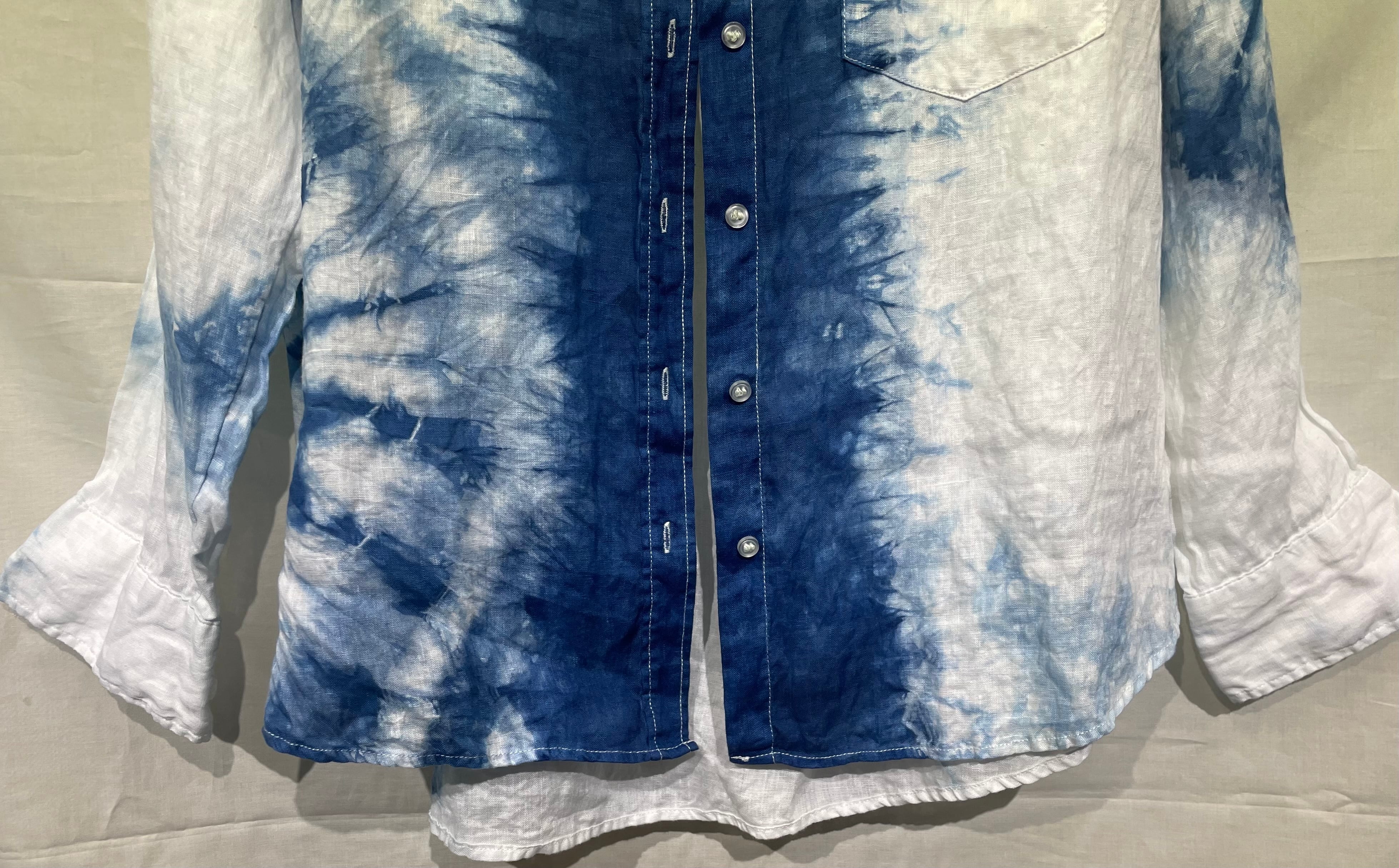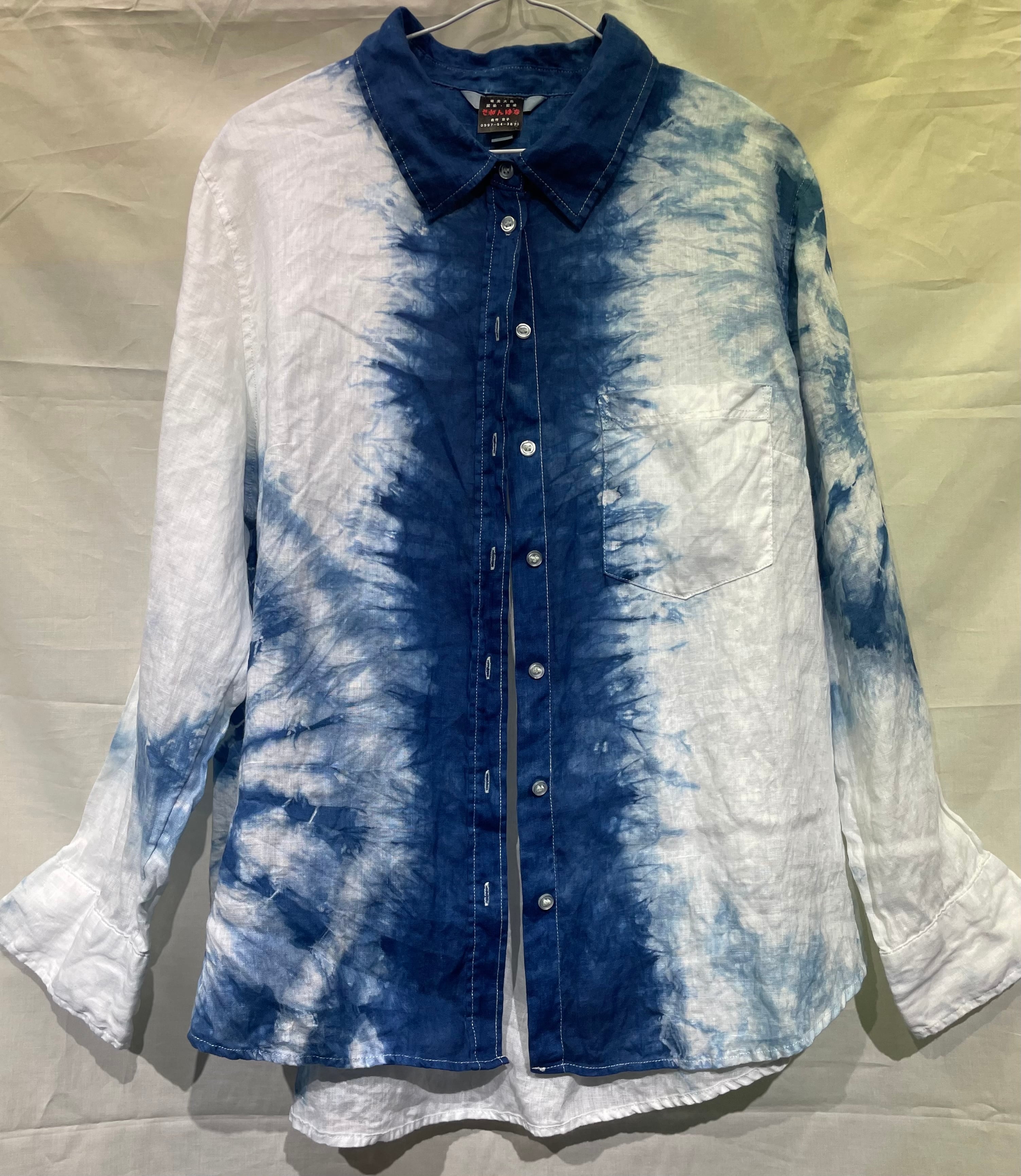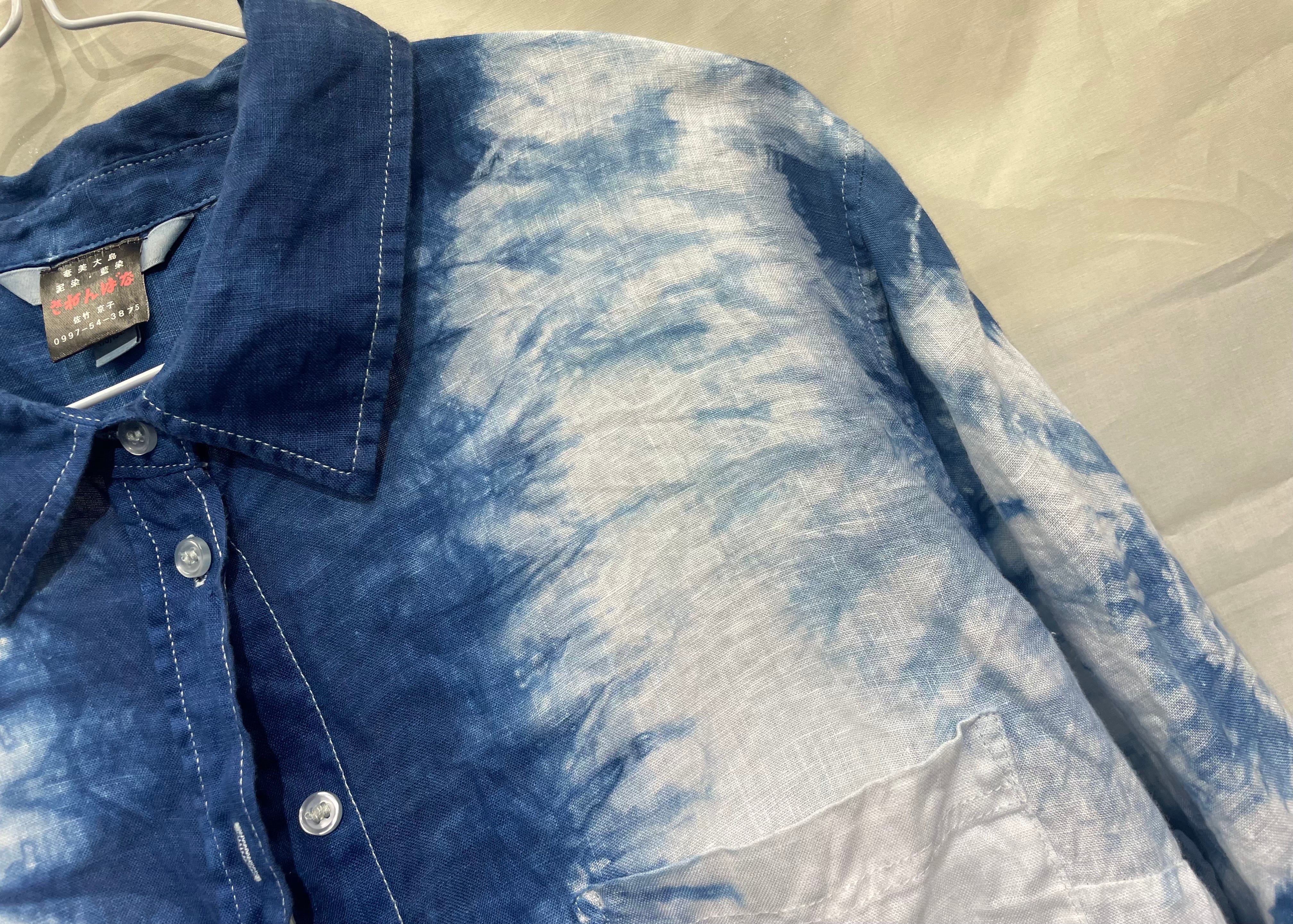 藍染チュニック前あき長袖/麻/F[aic604-169]送料無料